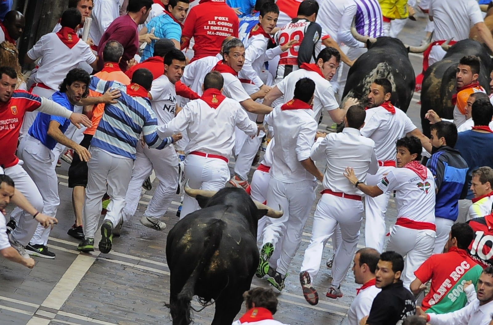 The Encierro (Bull Run) is the only moment of the day when the party stops, and great tension descends on the route just a few minutes before the bulls start their 'run'. The surge of emotions culminates in the bullring at the end of the run. The fiesta continues with caldico (clear broth) chocolate with churros (long doughnuts), the Gigantes (ceremonial giants) and Cabezudos (carnival figures with big heads), the aperitif, the bullfight in the evening, or the fireworks at night. These then give way to all-night partying.